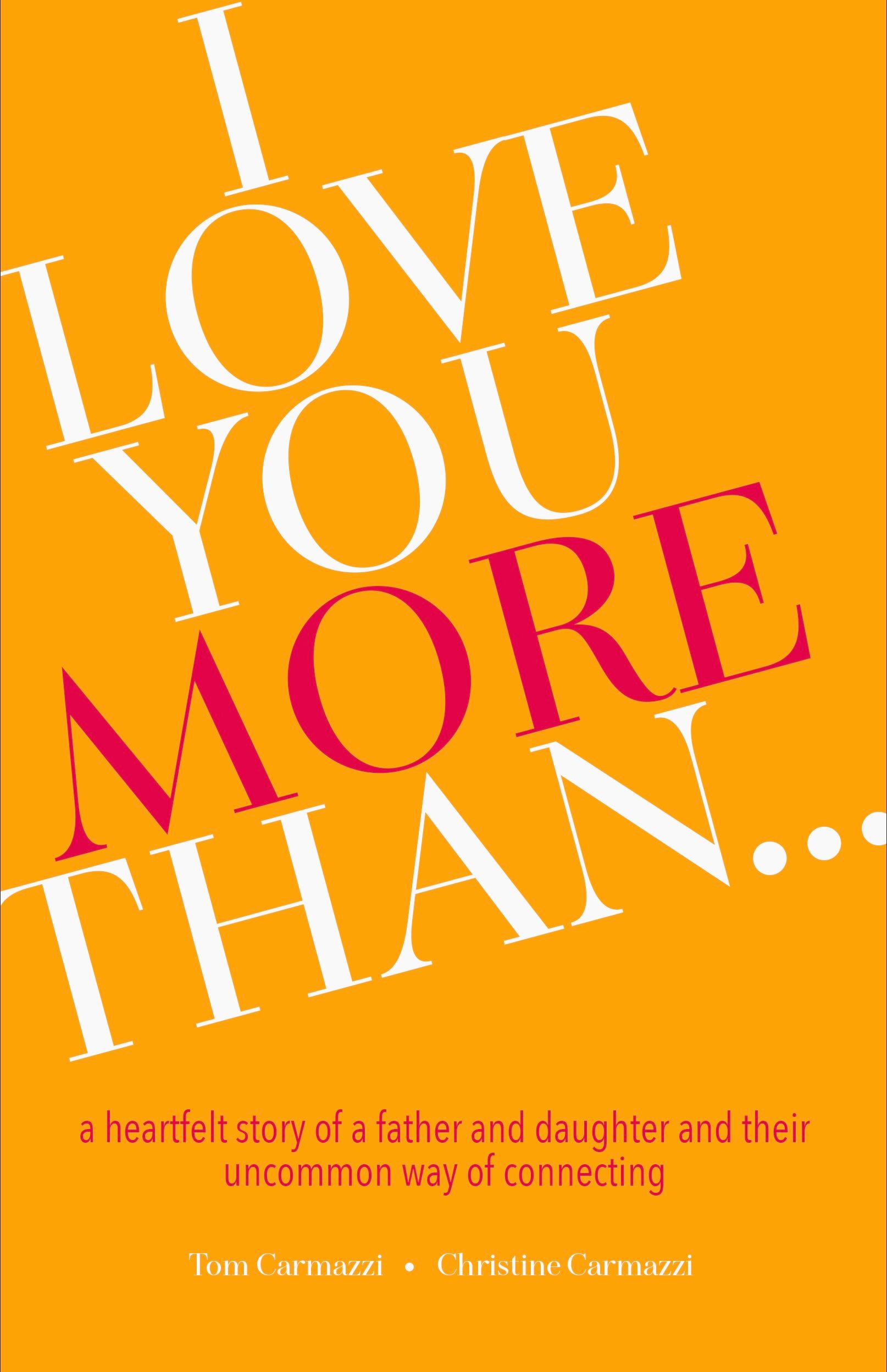 In I Love You More Than…, you will discover the simple, unique framework Tom developed to deepen his connection with Christine when life had put distance between them. Father and daughter share freely about their values, perspectives, and experiences. You will have the opportunity to enter their conversations and witness the evolution of their relationship.
